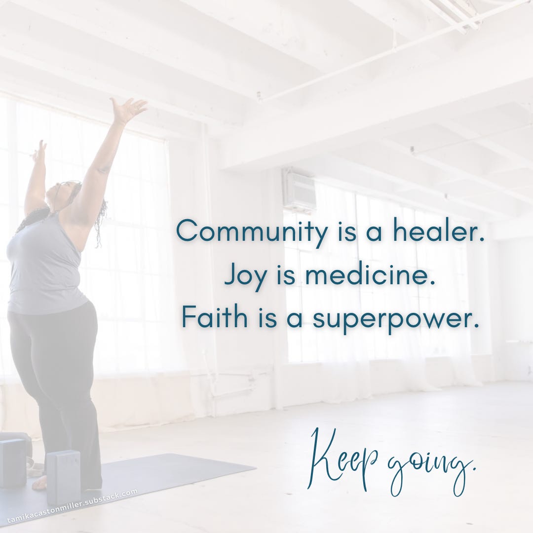 While there is not just one way of collective repair and liberation, if we lean into the medicine of community, faith, and joy, and listen to and learn from nature, I believe we will prosper.
